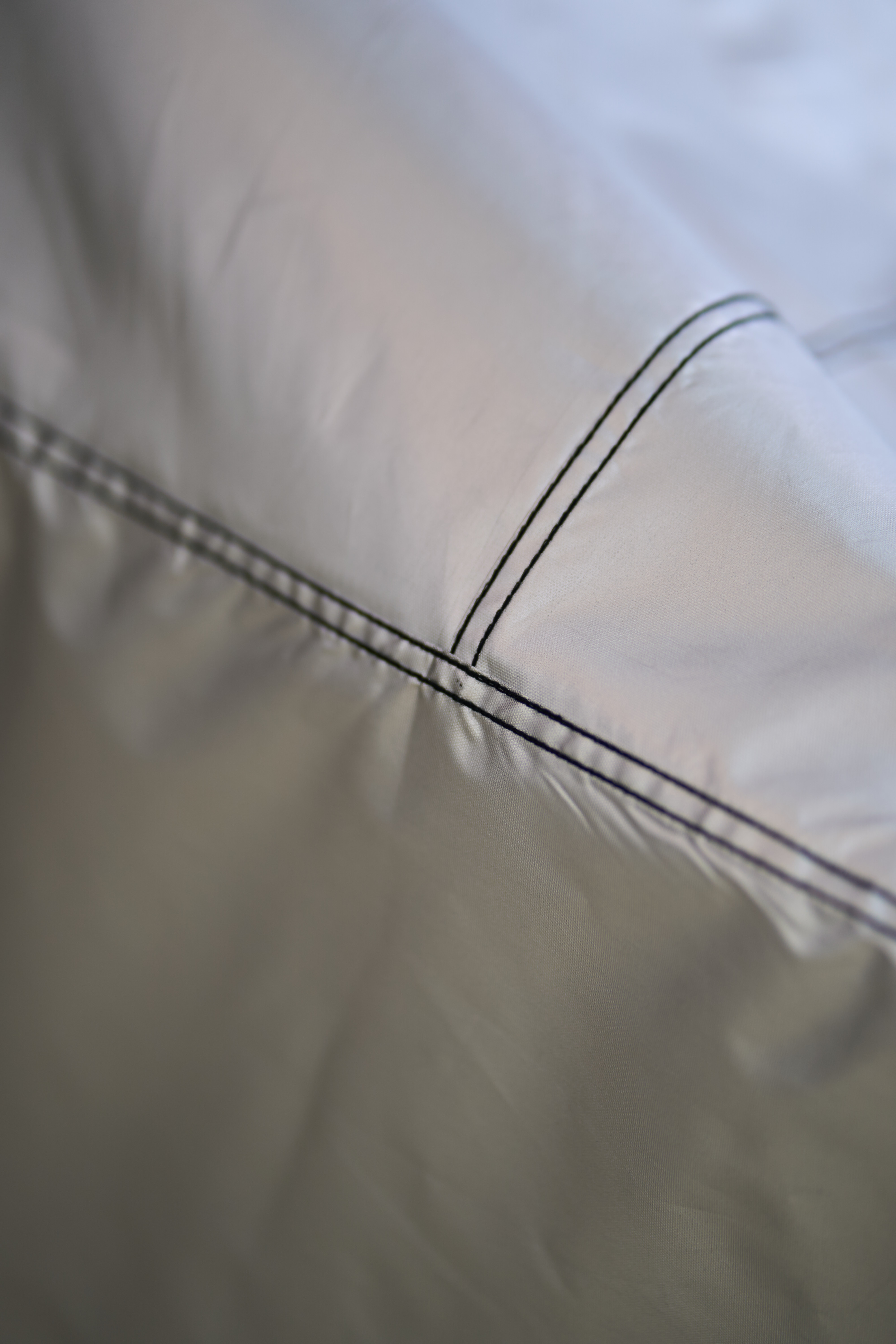 Летом в жаркую погоду мы советуем надевать чехол обратной строной, то есть серебристой подкладкой сверху. Но постоянно так делать не рекомендуется, чтобы не повредился гидроизоляционный скотч на швах.